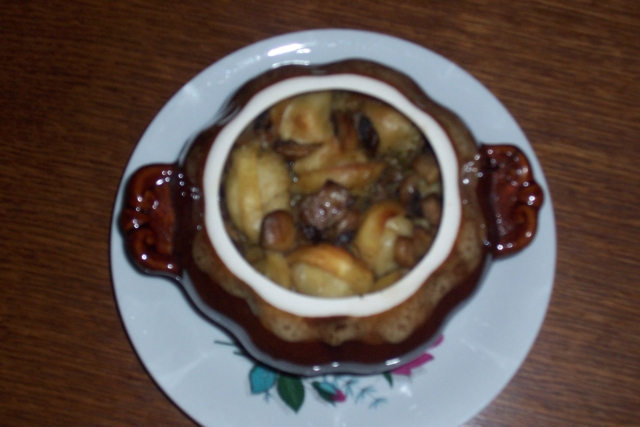 А теперь, когда так здорово получилось с пивом все, то мой муж комбинирует немыслимые вещи в горшочках, и все равно вкусно. Грибы, пельмени, просто овощи, супы - горшочки работают на славу!!!