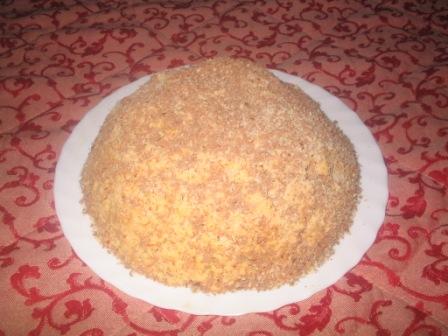 На самом деле очень простой тортик. Для семьи то что надо. Правда еще на вкус не пробовали, только собрала и сделала фото. Горку не решилась свободно собирать, выложила пленкой салатницу, и вложила торт. Потом перевернула и посыпала тертыми орехами и шоколадом. Оцените! но судите не очень строго!