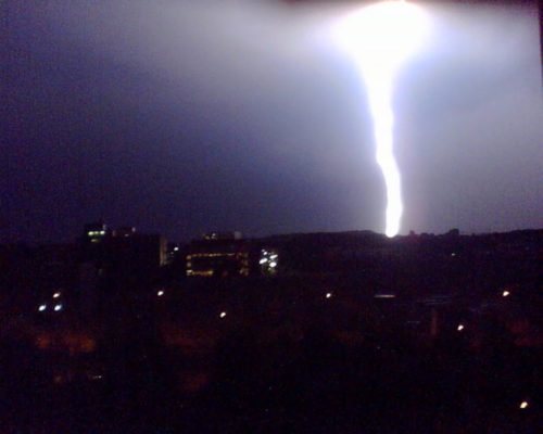 Что-то подобное наблюдал из своего окна. Молния тоже ударила в землю.