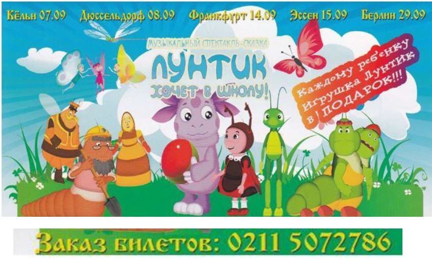 Лунтик хочет в школу 0211-5072786;0172-2094024 Köln-Düsseldorf- Essen: