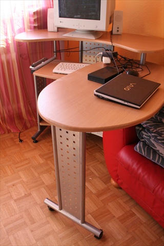 5. Компьютерный столик. Состоит из 3-х частей. Для удобства и различных вариантов части сдвигаются и раздвигаются относительно друг друга. Ширина 115 см, Высота 83см.