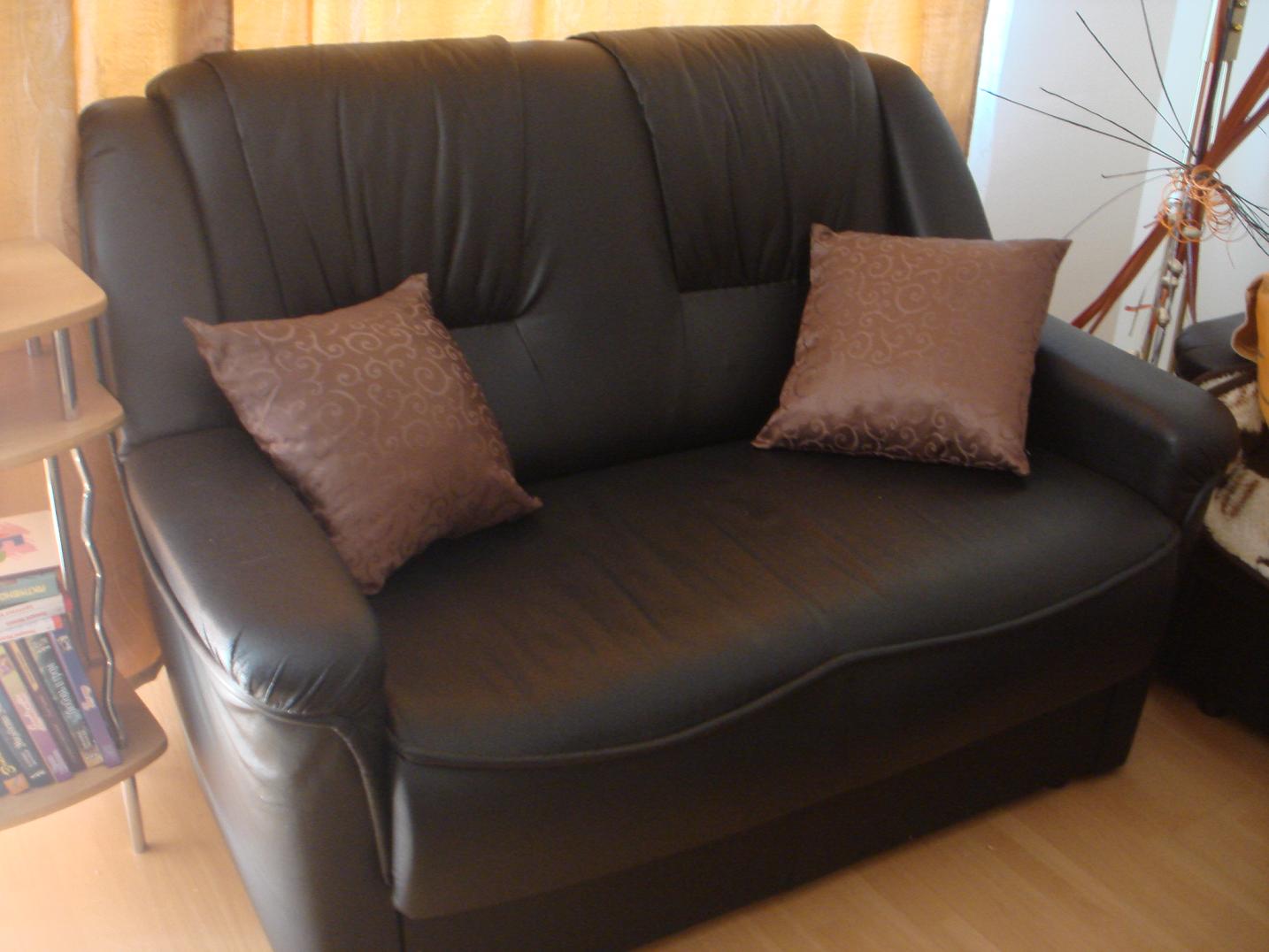 Продаются 2 дивана (длина 2м и 1.25 м) и одно кресло (80 см), всё из одного комплекта, чёрного цвета, кожа.