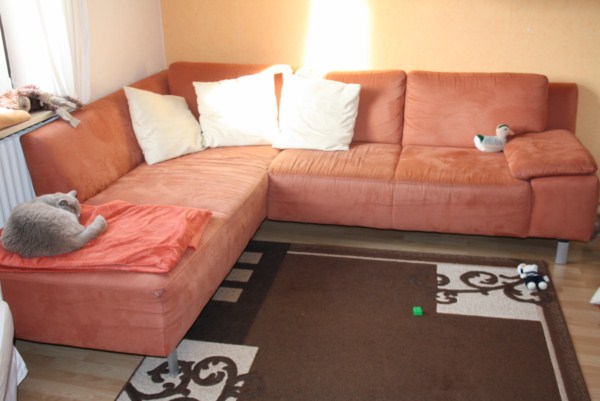 Das Sofa ist in einem guten gebrauchten Zustand, weich und angenehm zu sitzen und zu liegen.