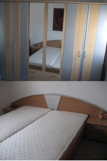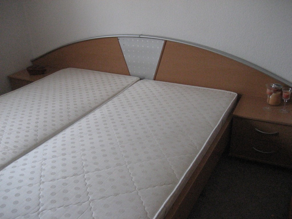 Итак, номер первый: Французкая двуспальная кровать, размером 1,80 х 2,00 м плюс 2 прикроватные тумбы. Cмотрите фото по-крупнее! Два почти новых латенроста и два матраца по 90 см - тоже практически новые, отличного качества!!!