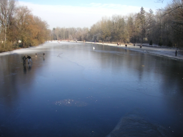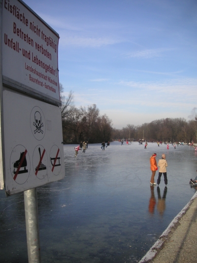 Недалеко от U3 Thalkirchen свободно катаются на коньках или играют в хокей.