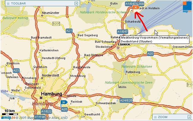 Sie erreichen den Campingplatz └Lotsenhaus⌠ von der Autobahn Hamburg √ Lübeck (A1),