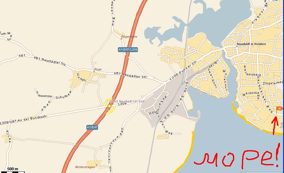 Abfahrt Neustadt √ Süd, in ca. 5 Minuten. (2. Campingplatz rechts Richtung Pelzerhaken)