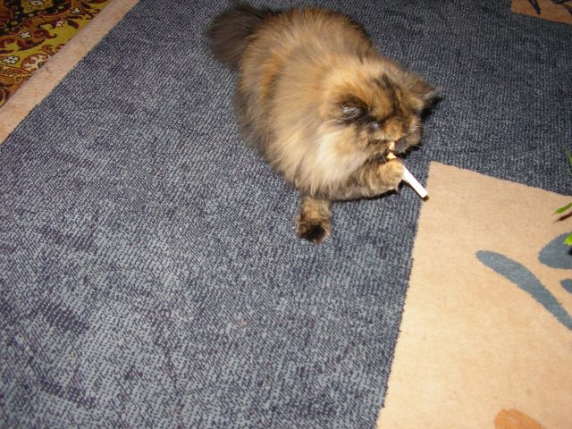 Ет ещ╦ не самая большая беда... Неудобство в том,что она за день выдрыхнится,а потом целую ночь нас терарезирует...Играй мол с ней! И пофигу ей,что мы не реагируем на не╦,она прыгает по нам и играет с нашими волосами
