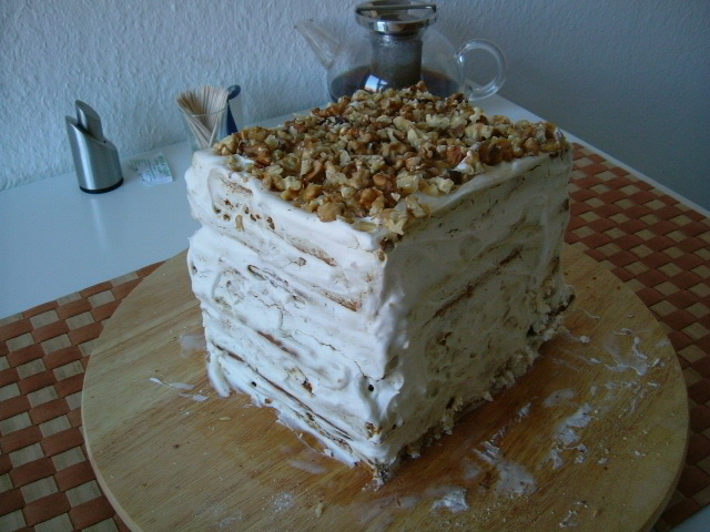 Вс╦ отлично для первого раза. Делай коржи как можно тоньше, лучше пропитается. Сухой он ещ╦ ни разу не был.