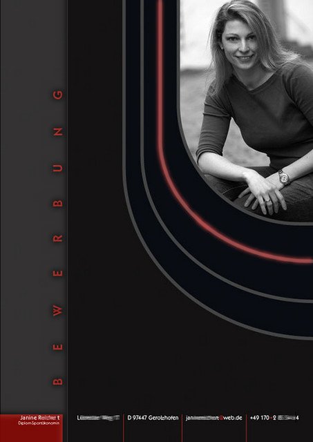 Дизайн классный, а вот фотку я бы советовала без домов на заднем плане. Это вс╦ таки Bewerbungsphoto, хоть и в спортивную фирму.