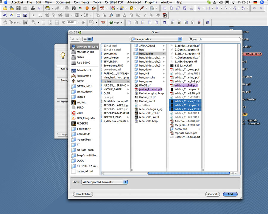 ищешь твои картинки (JPG или TIFF), при нажатой Umschalt-Taste выбираешь их все РАЗОМ!!!