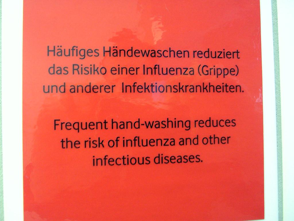 У нас на работе в туалетах уже давно висят таблички: "Hände waschen nicht vergessen!"
