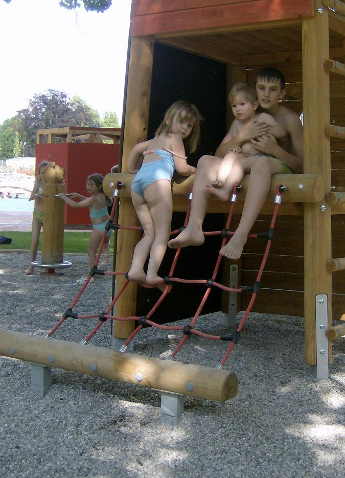 Привет, у нас нет своего дома и естественно и места своего для игр тоже нет, но вот открылся у нас натурбад и я там для себя взяла интересное оформление детской площадки фоточку прилагаю.. это мелкие камешки они совсем не болючие по ним очень легко ходить и после дождя воды нету она вся уходит , просачивается в землю, мне очень понраилось, и ещё + это то что всегда чисто