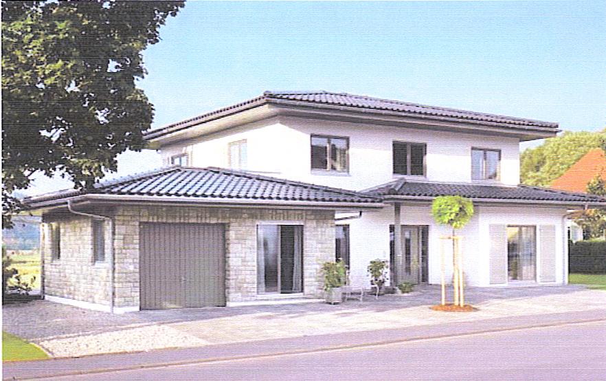 Вот типа такой у них дом, только у гаража крыша поменьше выступать будет.