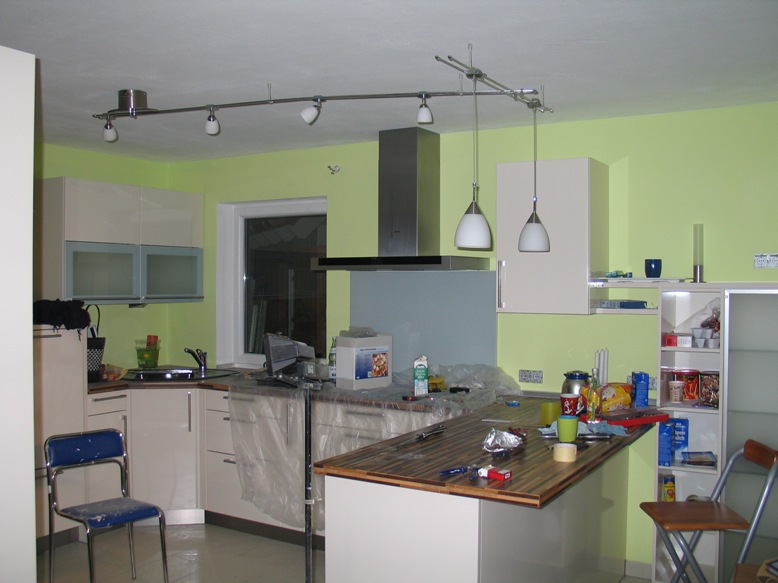 а это на кухне - долго же мы искали этот вариант - когда свет проектировали то забыли мне проводку сделать над барной стойкой (вот я потом себе голову ломала со светом там) все никак не могли подходяшую лампу найти(( пришлось вот такое вот делать - что в принципе сейчас мне уже нравится)) а при покупке ужасно не нравилось)))