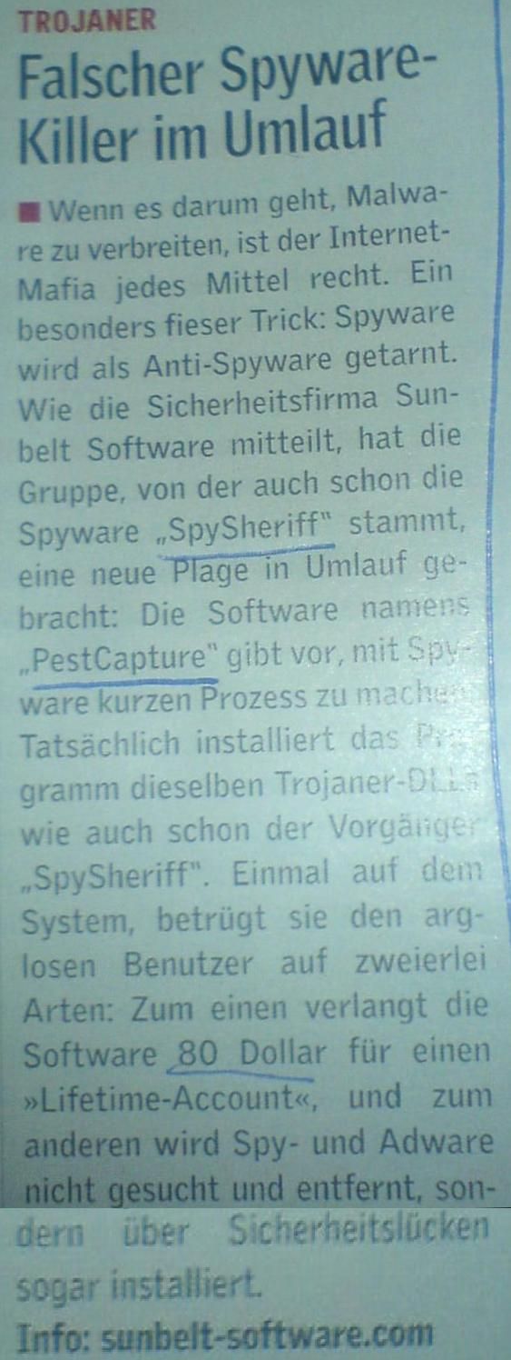 ты б ещ╦ предложил явно заразные: WinAntiVirPro 2005, .6, .7, .8 или SystemDoctor, SpySheriff (который вы ещ╦ и за 80 долларов купить сначала должны)...