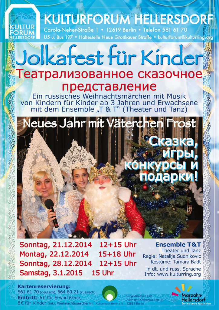 Театр-студия "T&T" приглашает Вас и ваших детей на Новогоднюю сказку + детскую игровую программу!