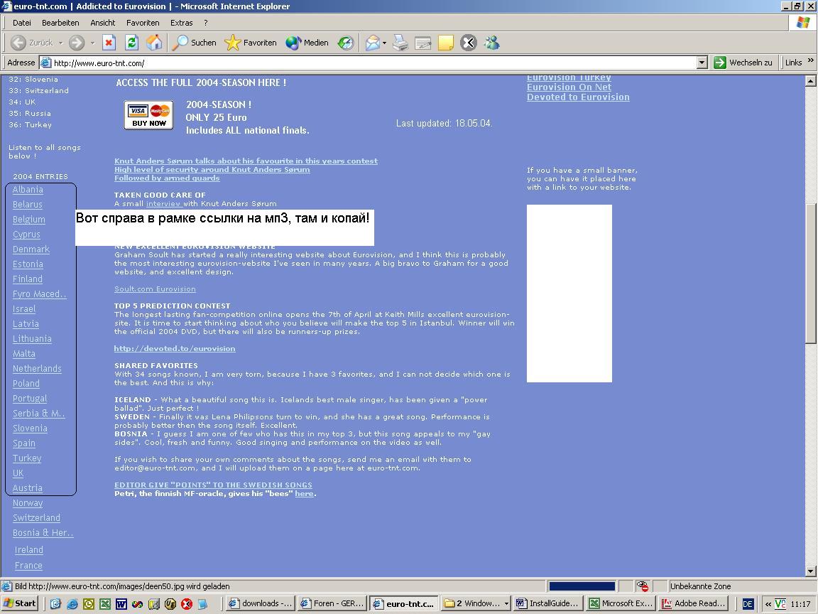 Кто хочет ещё раз песни с Евровидения послушать, копайте тут: http://www.euro-tnt.com/