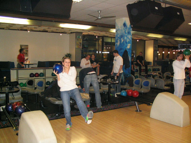 У нас вот в Ройтлингене, как выяснилось, просто шикарный, огромный Боулинг-центр! 20 дорожек! и музыка, и свет, и бар, и все дела! И даже ботинки с зеленой подсветкой какой-то