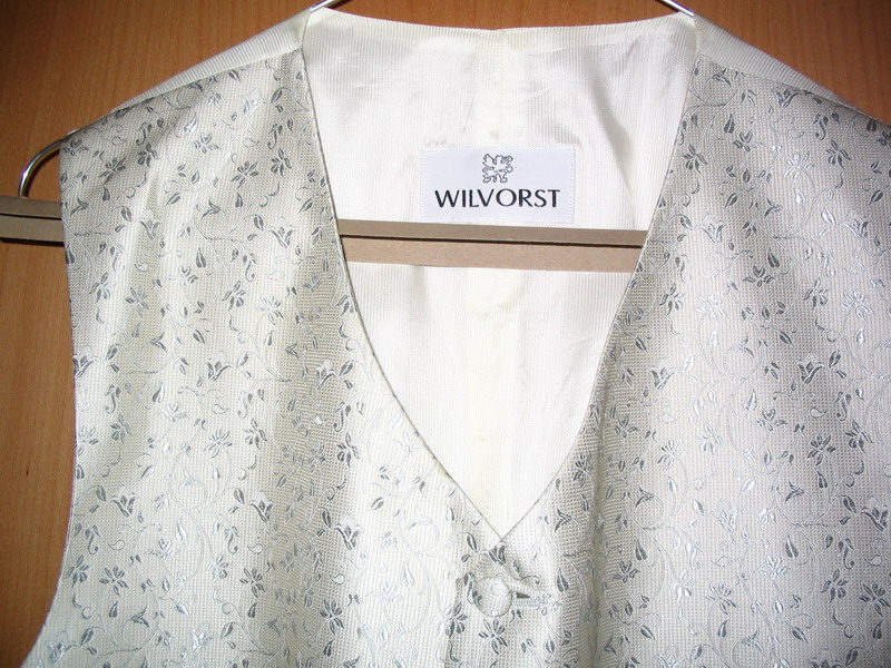 Потом попросили посоветовать нам Hochzeitsweste mit Plastron und Einstecktuch. Выбрали мы, как продавец и советовал серебристо-серую. Выглядит мой теперь на все 100%