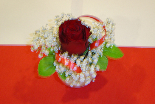 . У флористки заказала 20 не распустившихся роз и Schleierkraut, вот и все. Они делаются очень просто и быстро, получилось сразу. Зелень правда искуственная. Ее втыкаешь в слегка влажную массу, розу обрезала, подвязала красной ленточкой воткнула, свежие пушистые веточки Schleierkraut вокруг, ВСЕ