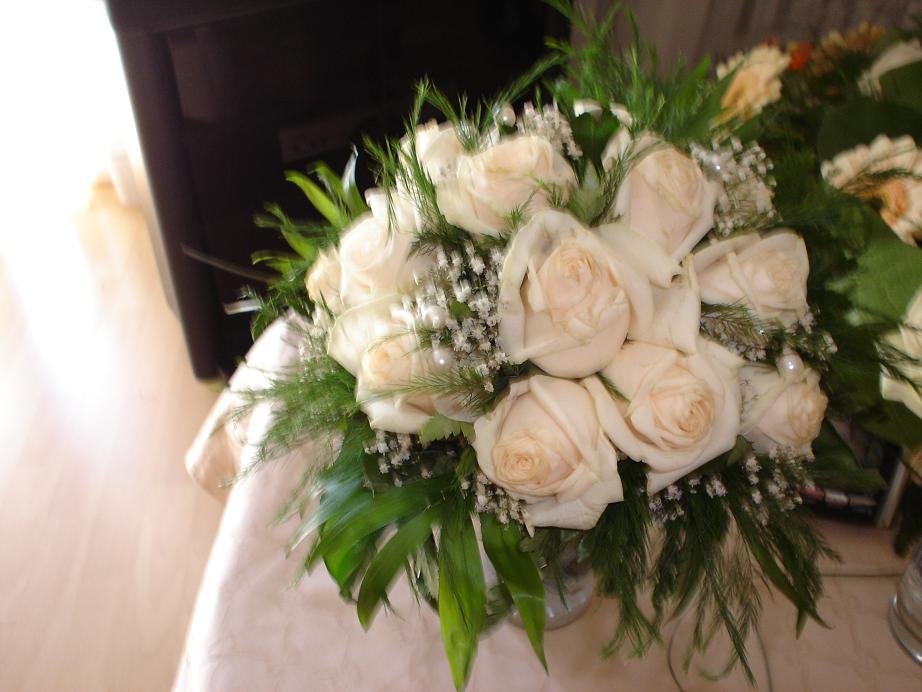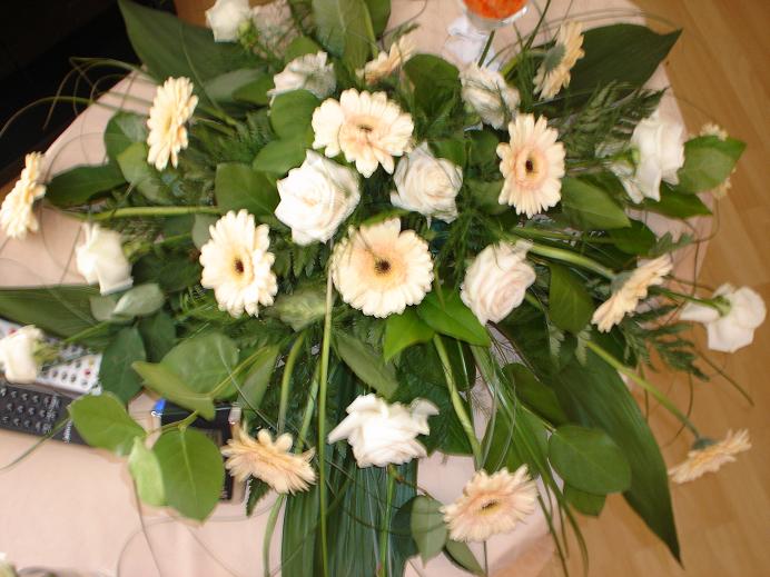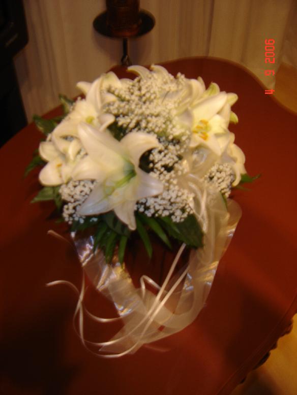 Короче вышло так: 1 будет из лилий в загс + бутоньерка (лилия), 1 большой букет на алтарь, 1 на стол, 1 на машину, 1 свадебный букет из кремовых роз + бутоньерка(роза), 2 бутоньерки для дружек (лаксовые розы): Все вместе 150 евро. Вышло дороже потому что розы кремовые были и герберы особенные, таких в магазине не найдешь. А так было бы немного дешевле.