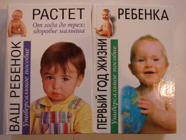 Первый год жизни ребенка -668 стр., расписано по месяцам Ваш ребенок растет - 686 стр., расписано по основным темам - основы ухода -питание -все о туалете -здоровье -безопасность -детские травмы -когда одному из детей от1 до 4 -и др. Переплет твердый.