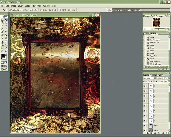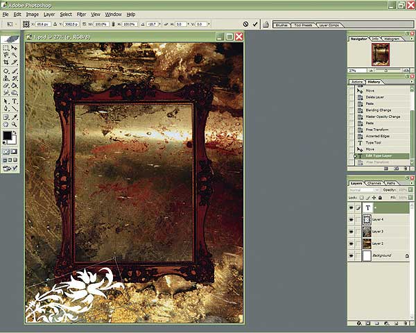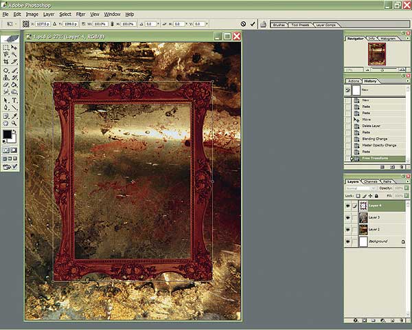 9 Чтобы уменьшить размер рамки, прибегаем к команде Scale (меню Edit═> Transform > Scale) и изменяем масштаб рамки до нужного размера, удерживая нажатой клавишу Shift.