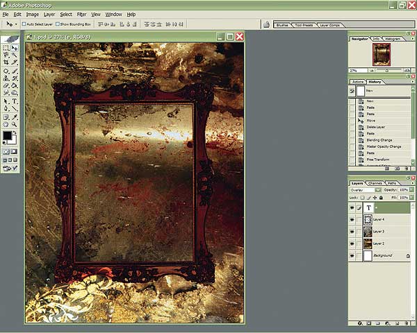 ═5 В панели управления слоями меняем режим наложения верхнего слоя на Overlay и снижаем непрозрачность (Opacity) до 30%.