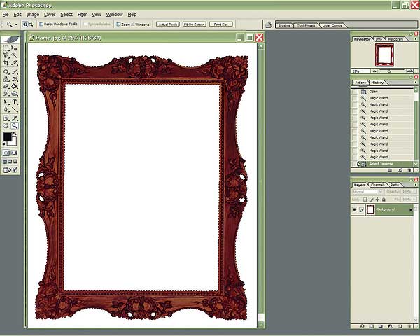7 Инструментом Magic Wand Tool выделяем фон от рамки и инвертируем выделение (меню Select > Inverse).