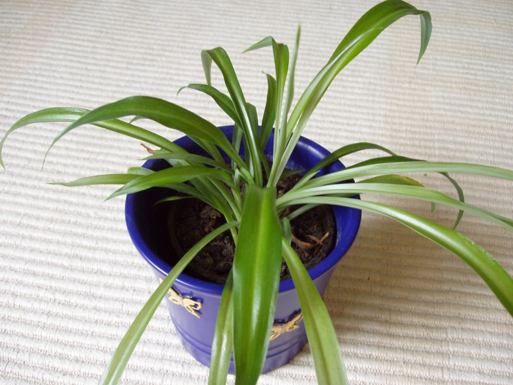 Хлорофитум. Бывает со светлыми полосочками посередине, бывает без.